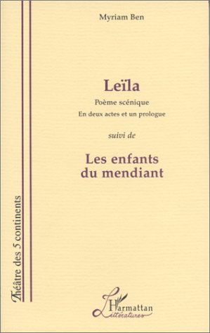 Leïla : poème scénique en deux actes et un prologue suivi de Les enfants du mendiant : [Montpellier, Théâtre de la Jetée, Atelier Théâtr'Elles, 31 mars 1995] / Myriam Ben [ Livre] Publication: Paris|Montréal (Québec)|Torino : Ed. l'Harmattan, 1998, Impr. ÉvidenceDescription: 147 p. ;